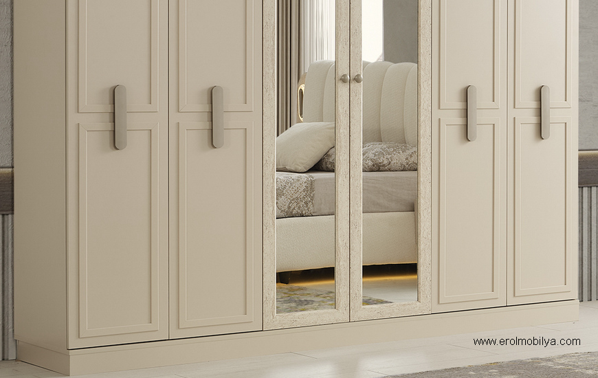 Ürüne Ait Parça Adetleri : 6 Kapılı Dolap, Şifonyer + Aynası, 2 Adet Komodin, Başlık Bu Üründe Başlığa Uygun Baza ve Yatak Ölçüsü : 150 cm * 200 cm veya 160 cm * 200 cm dir(Yaylı Yatak ve Baza Fiyata Dahil Değildir) * TSE |