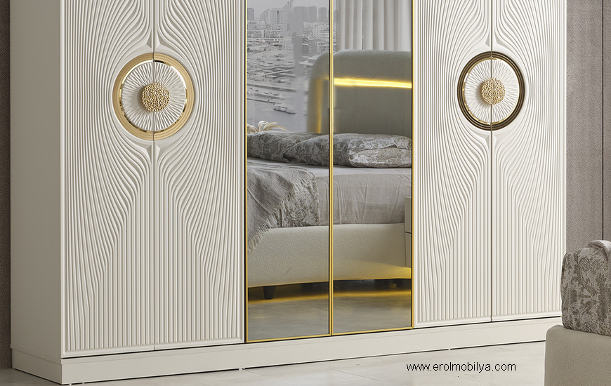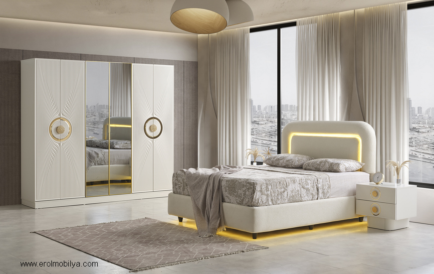 Ürüne Ait Parça Adetleri6 Kapılı Dolap, Şifonyer + Aynası, 2 Adet Komodin, Başlık, PUF