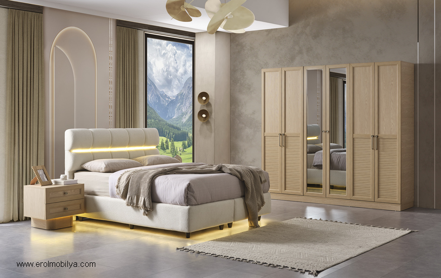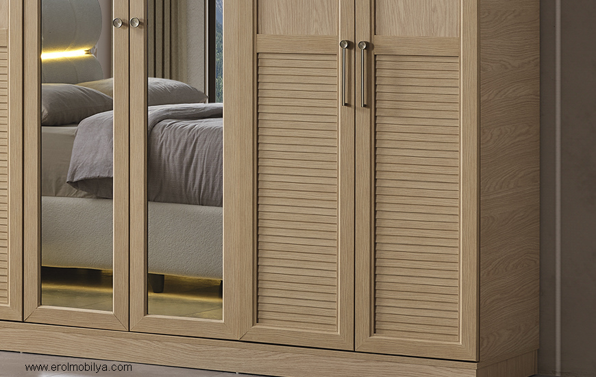 Ürüne Ait Parça Adetleri :6 Kapılı Dolap, Şifonyer + Aynası, 2 Adet Komodin, Başlık, PUF