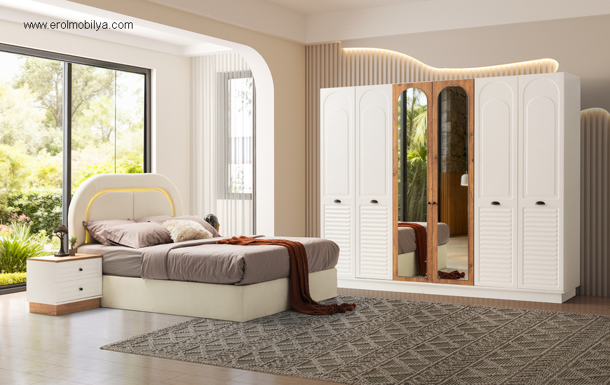 Ürüne Ait Parça Adetleri : 6 Kapılı Dolap, Şifonyer + Aynası, 2 Adet Komodin, Başlık Bu Üründe Başlığa Uygun Baza ve Yatak Ölçüsü : 150 cm * 200 cm veya 160 cm * 200 cm dir(Yaylı Yatak ve Baza Fiyata Dahil Değildir) * TSE |