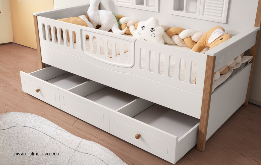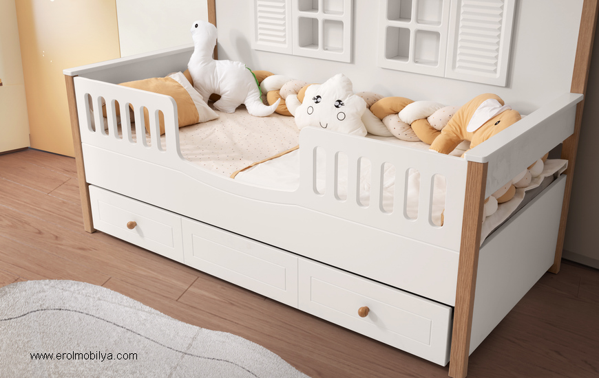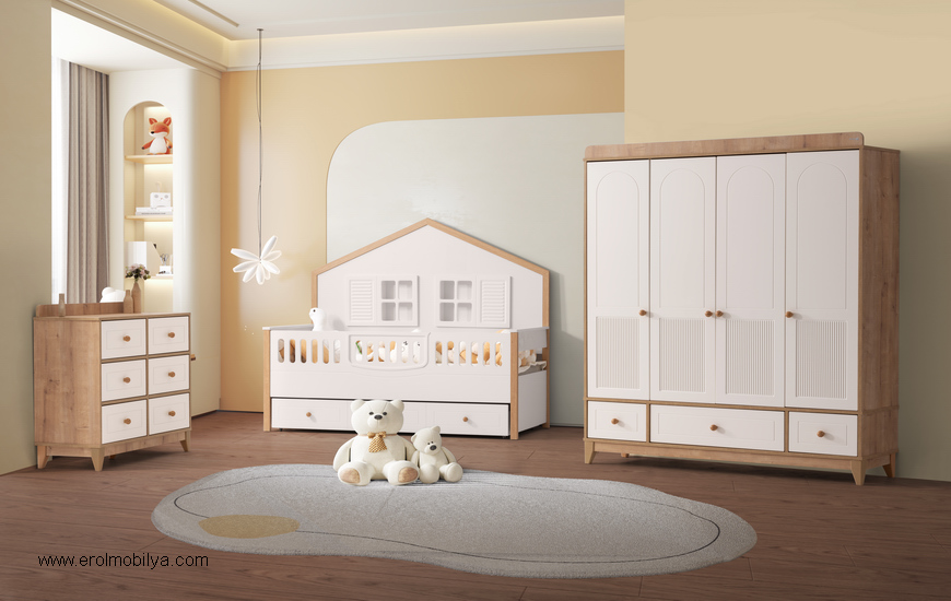 Ürüne Ait Parça Adetleri : 4 Kapılı Gardırop, Şifonyer, Mia Yavrulu Karyola, Korkuluk Aparatı Bu Üründe Üst Yatak Ölçüsü : 90 cm * 190 cm (Yaylı Yatak Fiyata Dahil Değildir) Yavru Yatak Ölçüsü : 80 cm * 180 cm (Yaylı Yatak Fiyata Dahil Değildir) Yatak ve Uyku Seti Fiyata Dahil DEĞİLDİR ÜRÜN RENGİ : KREM - SAFİR MEŞE