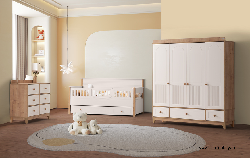 Ürüne Ait Parça Adetleri : 4 Kapılı Gardırop, Şifonyer, Via Yavrulu Karyola, Korkuluk Aparatı Bu Üründe Üst Yatak Ölçüsü : 90 cm * 190 cm (Yaylı Yatak Fiyata Dahil Değildir) Yavru Yatak Ölçüsü : 80 cm * 180 cm (Yaylı Yatak Fiyata Dahil Değildir) Yatak ve Uyku Seti Fiyata Dahil DEĞİLDİR ÜRÜN RENGİ : KREM - SAFİR MEŞE