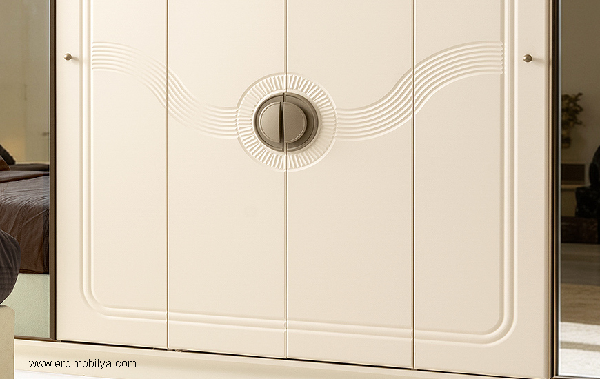 Ürüne Ait Parça Adetleri : 6 Kapılı Dolap, Şifonyer + Aynası, 2 Adet Komodin, Başlık Bu Üründe Başlığa Uygun Baza ve Yatak Ölçüsü : 150 cm * 200 cm veya 160 cm * 200 cm dir(Yaylı Yatak ve Baza Fiyata Dahil Değildir) * TSE |
