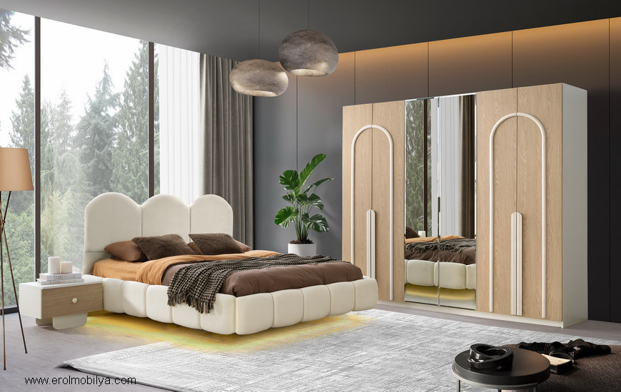 Ürüne Ait Parça Adetleri : 6 Kapılı Dolap, Şifonyer + Aynası, 2 Adet Komodin, Başlık Bu Üründe Başlığa Uygun Baza ve Yatak Ölçüsü : 150 cm * 200 cm veya 160 cm * 200 cm dir(Yaylı Yatak ve Baza Fiyata Dahil Değildir) * TSE |
