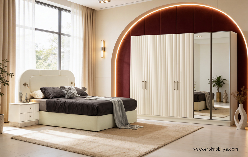 Ürüne Ait Parça Adetleri : 6 Kapılı Dolap, Şifonyer + Aynası, 2 Adet Komodin, Başlık Bu Üründe Başlığa Uygun Baza ve Yatak Ölçüsü : 150 cm * 200 cm veya 160 cm * 200 cm dir(Yaylı Yatak ve Baza Fiyata Dahil Değildir) * TSE |