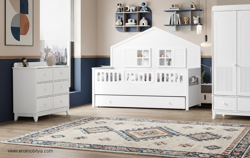Ürüne Ait Parça Adetleri : 4 Kapılı Gardırop, 6 Çekmece Şifonyer, Mia Yavrulu Karyola, Korkuluk Aparatı Bu Üründe Üst Yatak Ölçüsü : 90 cm * 190 cm (Yaylı Yatak Fiyata Dahil Değildir) Yavru Yatak Ölçüsü : 80 cm * 180 cm (Yaylı Yatak Fiyata Dahil Değildir) Yatak ve Uyku Seti Fiyata Dahil DEĞİLDİR
