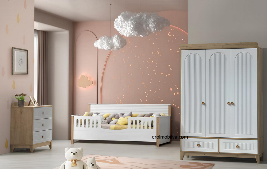 Ürün Detaylı BilgiÜrüne Ait Parça Adetleri : 3 Kapılı Gardırop, Şifonyer, Montessori Karyola * Kapaklar Mdf (E-1 Belgesi ve Boyalı Kısımlar İçin E-0 Belgesi Mevcuttur) |